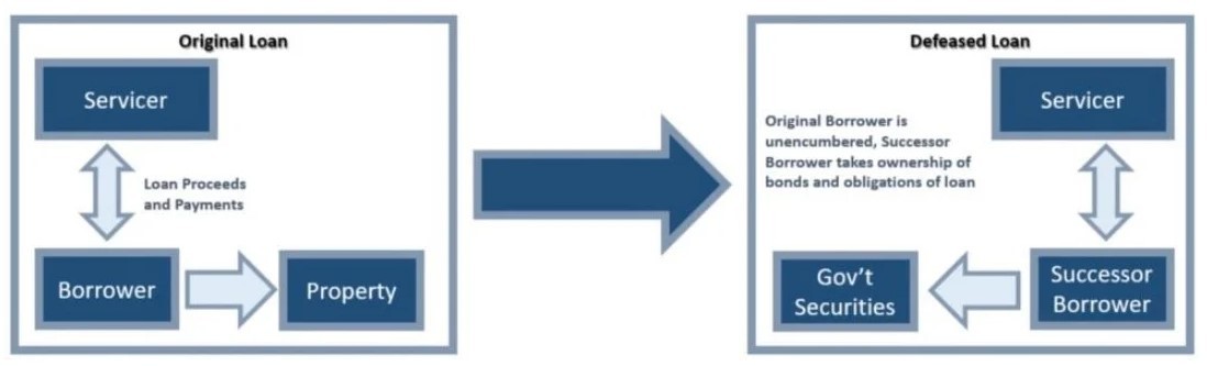Within this process, the bonds are transferred to a newly created special-purpose entity called the successor borrower, who assumes the debt obligations from the original borrower. The replacement securities are held in a restricted account of the securities intermediary, which sends the income from the bonds to the loan servicer to meet the debt obligations. The cash flow used to pay the loan payments are from the treasury bonds that were purchased.